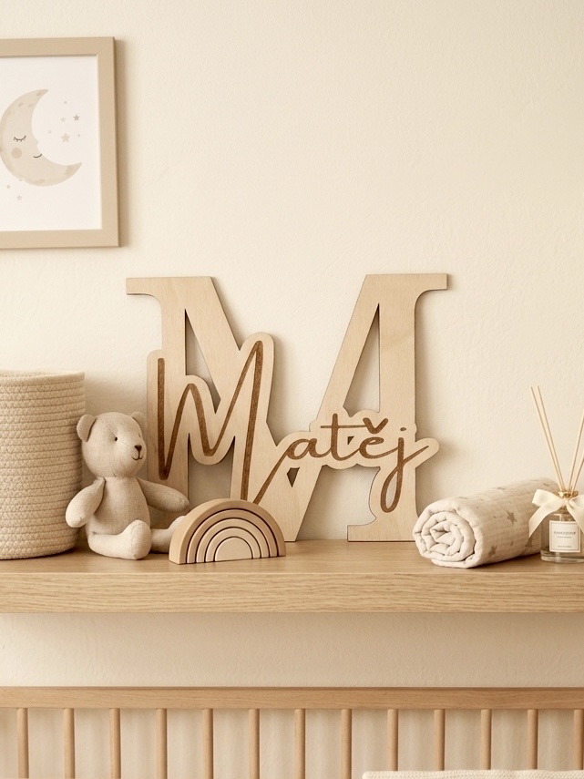 Každý kus je vyráběn na míru se jménem podle vašeho přání, takže vzniká jedinečný doplněk nebo krásný dárek k narození dítěte, narozeninám či jiné příležitosti.